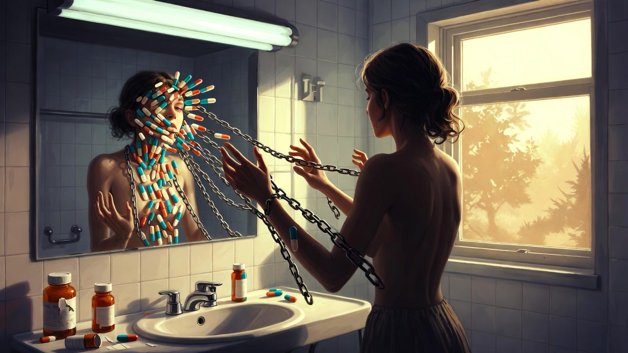 Es ist ein brillantes Geschäftsmodell: Wenn man sich besser fühlt, geht die Anerkennung an das Medikament. Wenn man sich nicht besser fühlt oder sich schlechter fühlt, ist es nie das Medikament – es ist man selbst und wie extra defekt man ist.